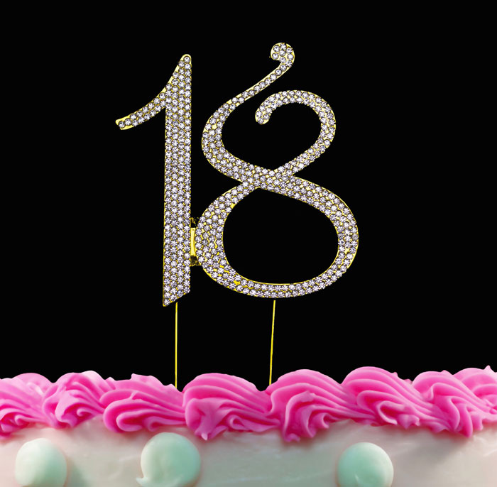 18th Birthday Cake Toppers. Toppers are machine cut and made from the highest quality non-shed glitter card, where packaging is applicable, unopened and undamaged item in original retail packaging. All our eighteen cake toppers allow you to add extra sparkle to the birthday cake.